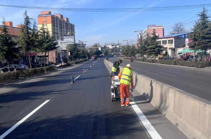 G343國道登封境是東西通行的一條重要通道,西連洛陽伊川,東接新密、新鄭,車流量大。本次標線施劃,有效提升了該路段的交通安全標志,為車輛安全通行提供了必要的路面標識。