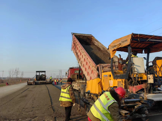 G107線東移(鄭開交界至炎黃大道段)新建工程施工(第二標(biāo)段)項(xiàng)目水泥穩(wěn)定碎石試驗(yàn)段攤鋪